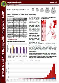 In March 2015, there were 667 new HIV Ab sero-positive individuals. This was 34% higher compared to the same period last year (498), and was the highest number of cases reported since 1984. Most (96%) of the cases were still asymptomatic at the time of reporting.